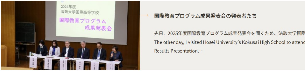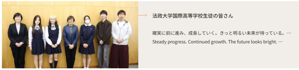 3/14 本校で開催した「国際教育プログラム成果発表会」にご参加いただきました法政大学総長 Diana Khor 先生に 法政大学HP内の「総長の出会いメモ」にご紹介いただき、温かいメッセージをいただきました。 画像のリンクから、ぜひ、ご覧ください。